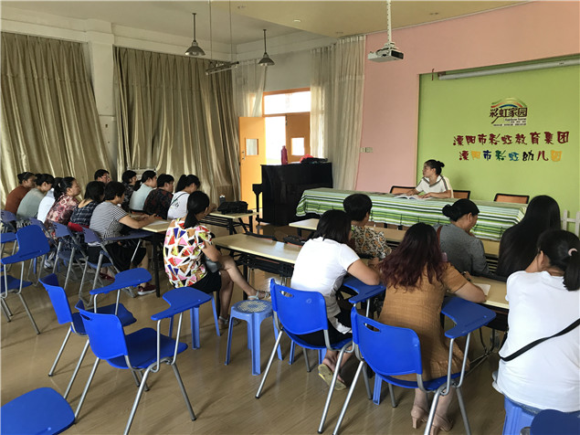教师培训由彩虹幼儿园陆钰频园长主持,陆园长代表集团欢迎新教师的加入并对新教师提出了新学期期望。全体教师学习了教师岗位职责及日常工作规范等内容。最后安琪儿幼儿园张玉娟园长以“主班和配班的有效配合”为主题向全体教师做了全面而又深入的具体说明。